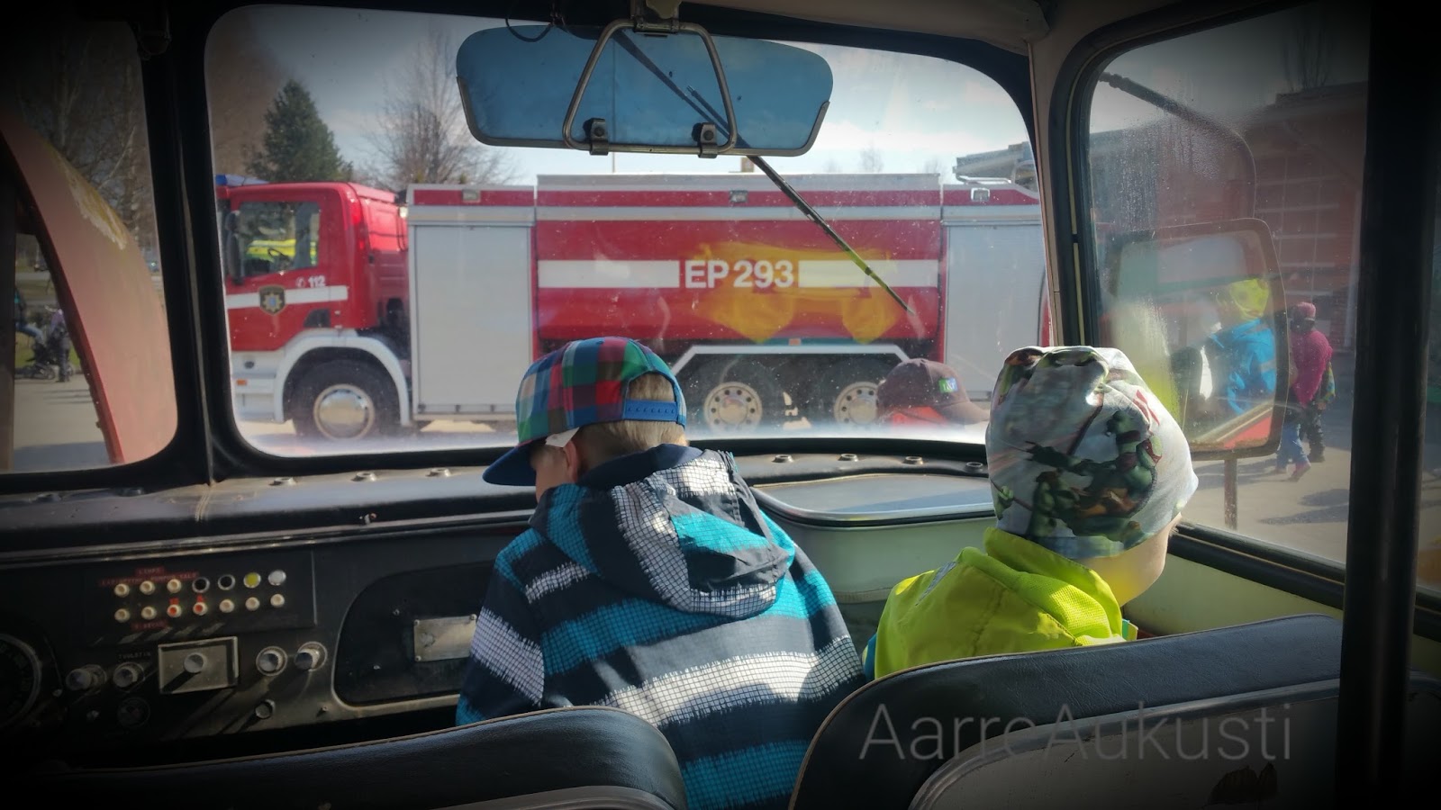 Tänään vappupäivänä käytiin paloasemalla perinteisessä lasten vapputapahtumassa. Tässä pojat ihastelevat vuoden -69 mallista paloautoa sekä ulkoa että sisältä.